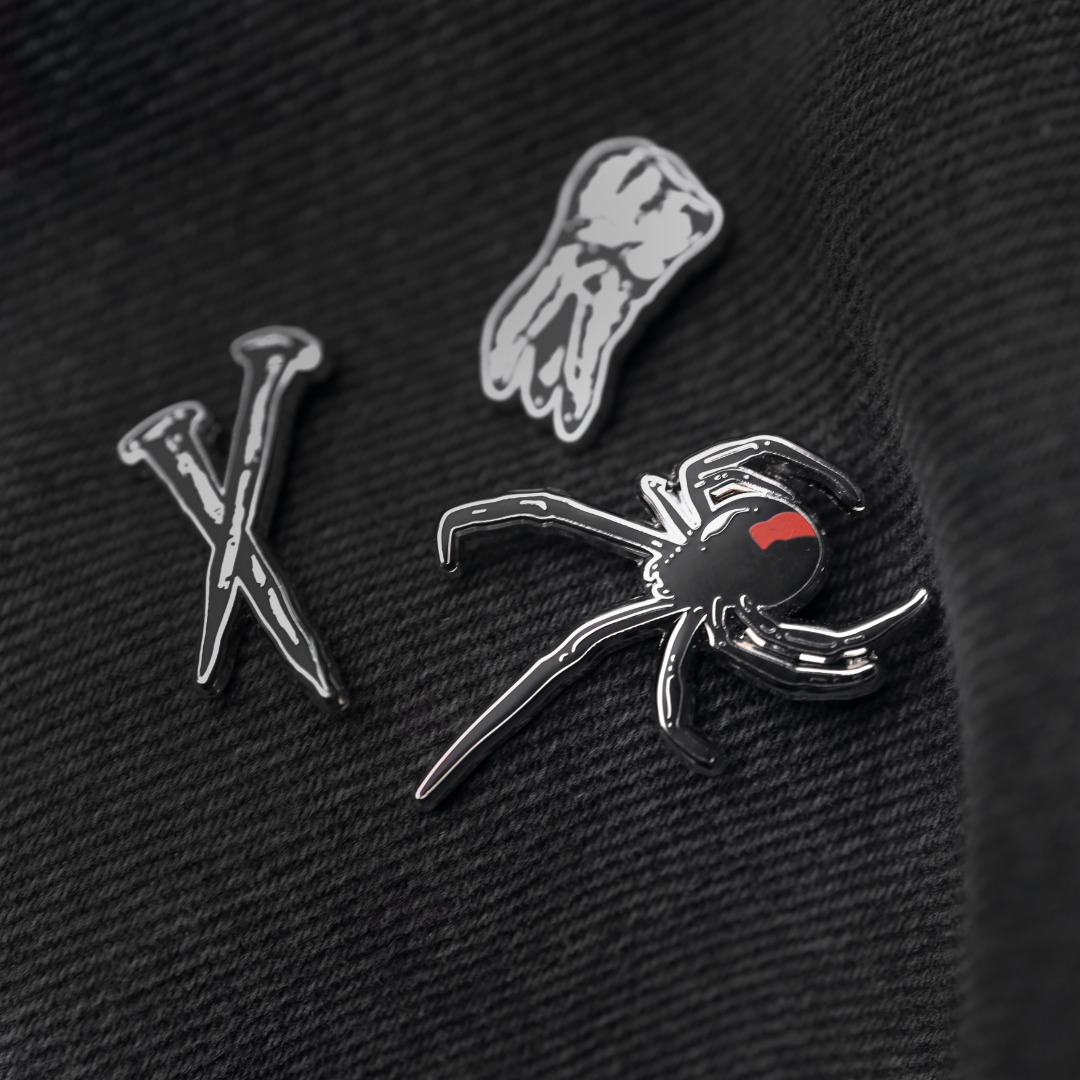Creepy, crawly, and completely captivating. Featuring a black widow, this pin spins a tale of beauty and danger wrapped in one intricate design.